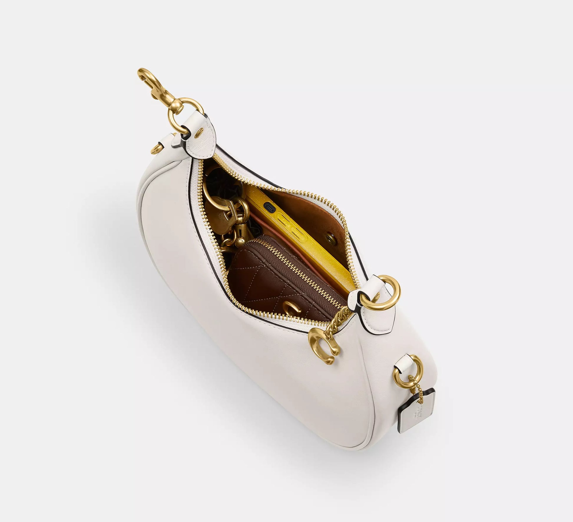 En avance sur son temps, notre Jonie est un modèle arrondi qui est à la fois un sac en croissant et un sac hobo avec du caractère. Plus spacieux que l’original, ce modèle 22 compact est confectionné en cuir tanné ultra doux et complété par une fermeture zippée sur le dessus ornée de notre élément « C ». Portez-le à la main ou comme un wristlet avec la poignée supérieure entrecroisée le soir ou ajoutez la bandoulière amovible en cuir pour les déplacements en journée. (Les possibilités sont infinies.)